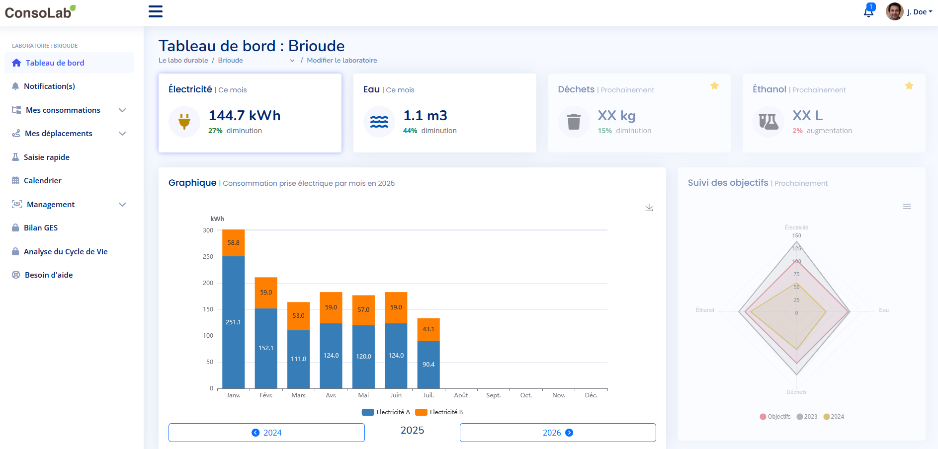 Figure 1 : Page d’accueil de Consolab 2.0 : Exemple de Tableau de bord avec des données annuelles