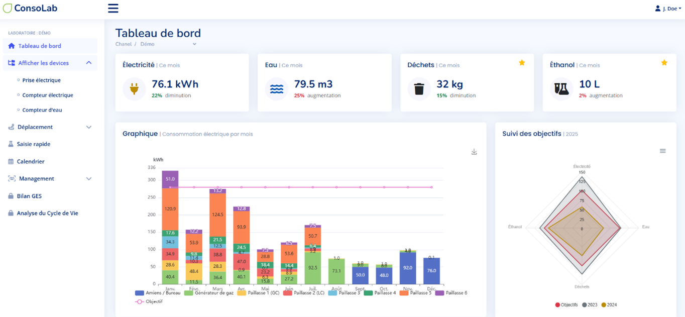 Figure 1 : Page d’accueil de Consolab 2.0 : Exemple de Tableau de bord avec des données annuelles
