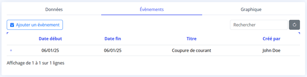 Un bouton "Ajouter une donnée" est présent pour entrer de nouveaux évènements manuellement.